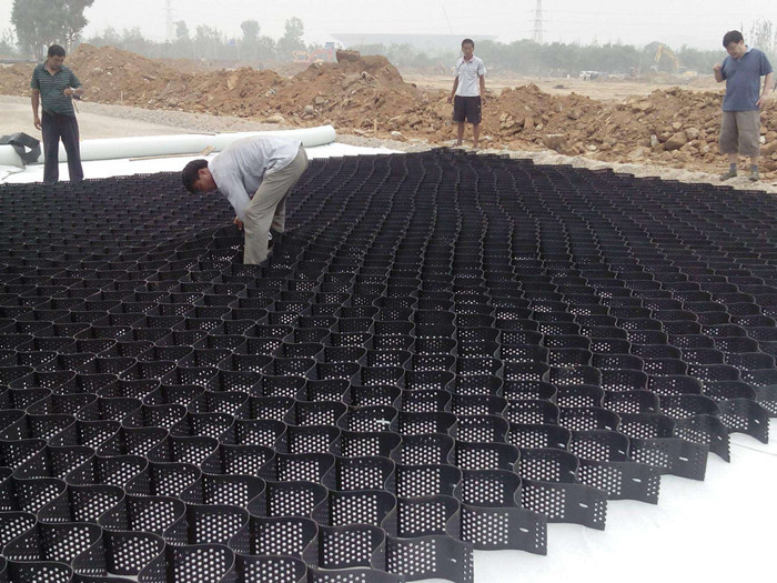 定義:土工格室是由強(qiáng)化的HDPE或PP片材料,經(jīng)高強(qiáng)力焊接而形成的一種三維網(wǎng)狀格室結(jié)構(gòu)。